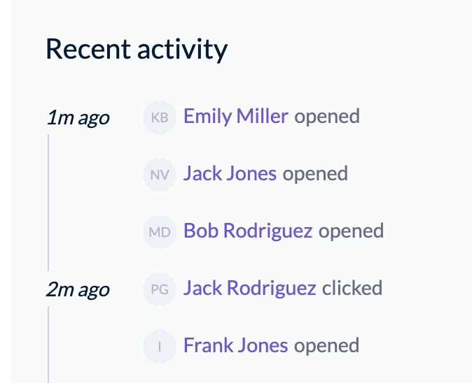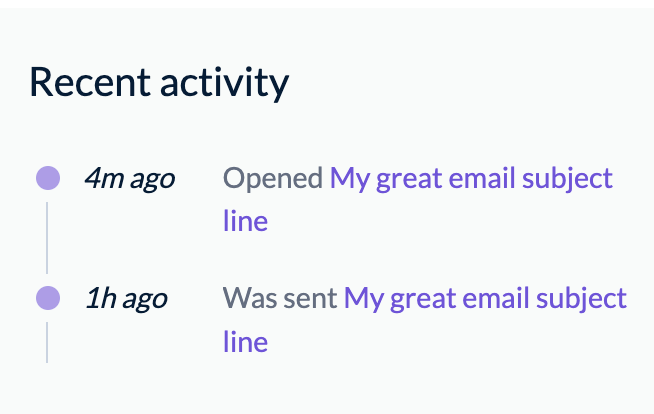 Timelines are great! EmailOctopus gives you the ones you’d hope to see. When you click on a sent campaign, you’ll see a sidebar showing up-to-the-minute open/click1/etc activity: