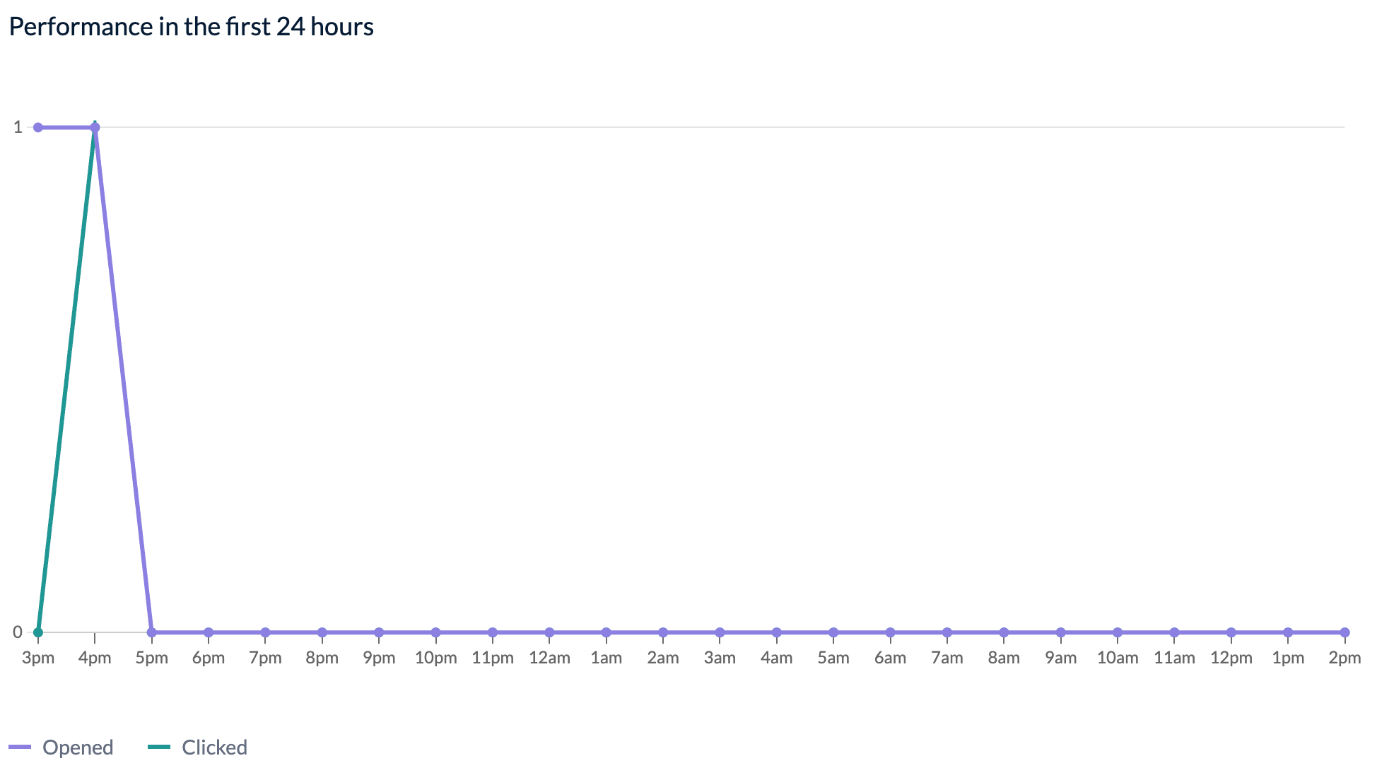 There’s a very pretty “Performance in the first 24 hours” chart that you get when looking at any sent campaign: